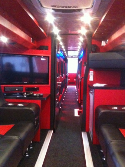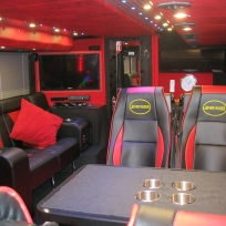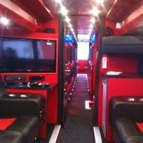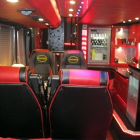 The "limousine with beds" Carrying up to 17 people including the driver(s), each coach has a unique layout and style. Our premium coaches feature memory foam mattresses for extra comfort! The pictures below give you a feel of what you should expect, however do not give full credit to each coach concerned. Please call to discuss your particular needs. Only a small number of our coaches are featured here. All A Grade coaches have free wifi for emails and web pages only (not for streaming or VOIP calls) , coffee machine, multimedia players, microwave. All have engine and 3-phase air conditioning with single phase air conditioning as a standby. THE AVERAGE AGE IS 3 YEARS. The front and/or back lounges can be converted to double bedrooms at extra cost.