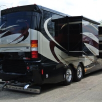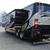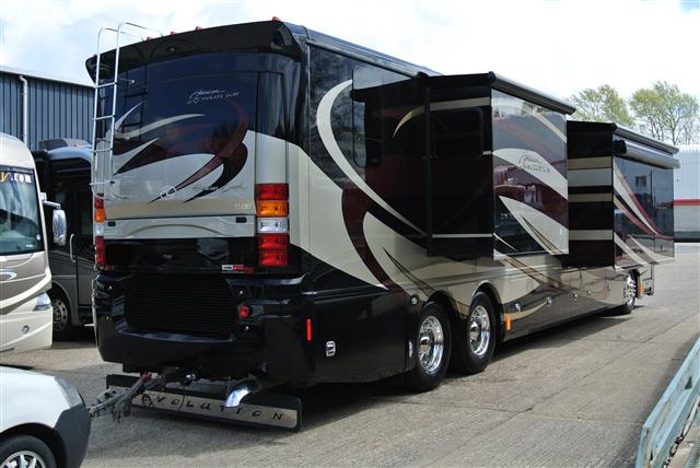 This is a modern luxury coach based on an American Motorhome design with full wall triple slide outs.