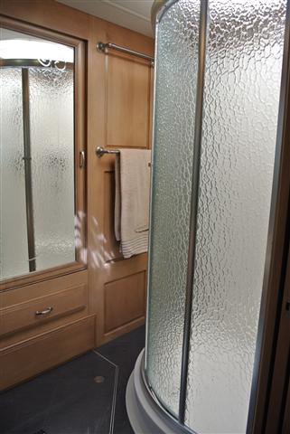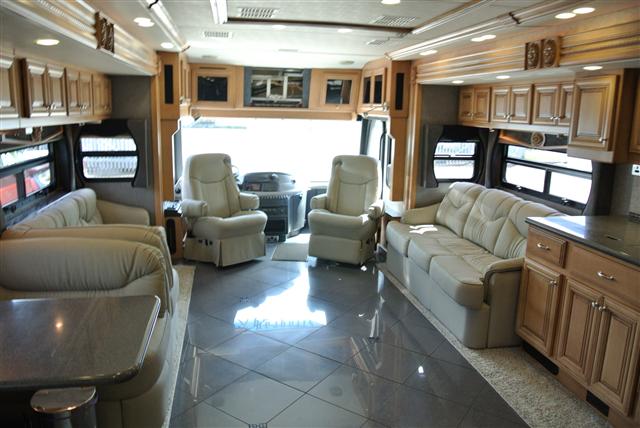 Because this coach has adjustable shocks and self-levelling suspension, you do not get all the bumps and rattles found in other similar American motorhomes. The ride is very quiet and smooth