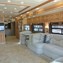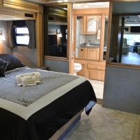 Because this coach has adjustable shocks and self-levelling suspension, you do not get all the bumps and rattles found in other similar American motorhomes. The ride is very quiet and smooth