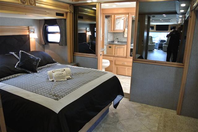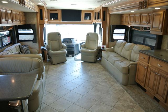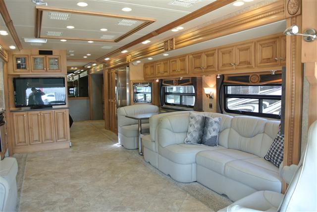 This is a modern luxury coach based on an American Motorhome design with full wall triple slide outs.